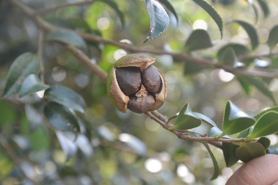 油茶是東方特有的珍貴樹種,茶籽從開花到結果,長達300天以上,